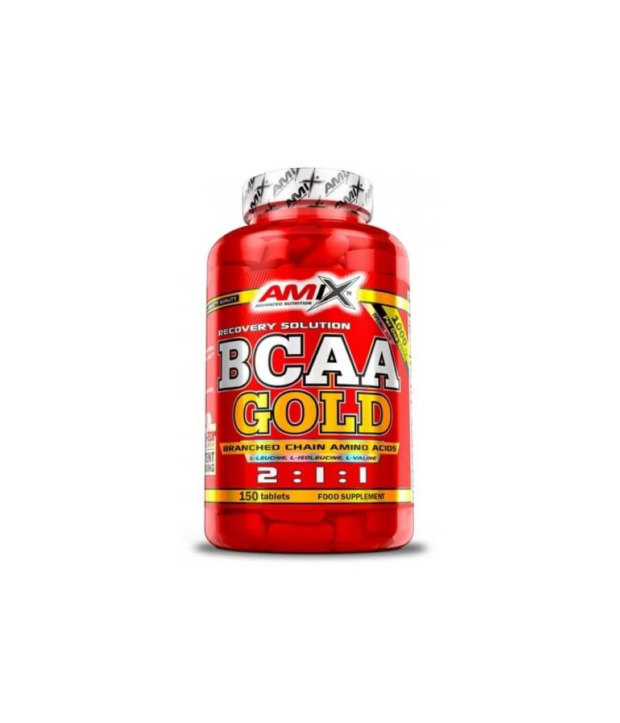 Amix nutrition BCAA Gold je tabletová forma vetvených aminokyselín L-Leucín, L-izoleucín, L-Valin v pomere 2: 1: 1. Esenciálne aminokyseliny patrí medzi základné zložky bielkovín, ktoré podporujú tvorbu a udržovanie svalov. Vynikajúcou vlastnosťou tohto výrobku je schopnosť podporovať rýchlu regeneráciu po náročnom tréningu, podnecovať rast svalov a zabrániť strate svalovej hmoty. Ďalším výhodným aspektom týchto aminokyselín je, že jedna tableta obsahuje až 1000mg BCAA. Tento produkt poskytuje nášmu telu jedinečné regeneračné schopnosti, predchádza pretrénovaniu svalov a posilňuje obranyschopnosť organizmu.