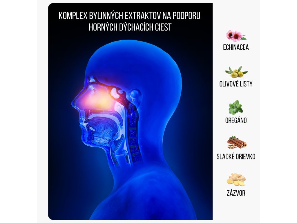 - Extrakt z bazy čiernej, oregana a echinacey: Tieto byliny sú často používané na posilnenie imunity, najmä v oblasti dýchacích ciest, predovšetkým pri infekciách.