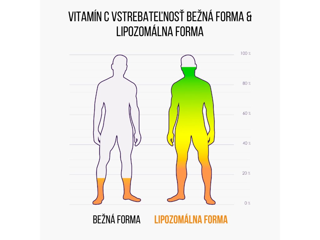 Tento inovatívny mix zvyšuje biologickú dostupnosť vitamínu C, čo je kľúčové pre posilnenie imunitného systému. Bioflavonoidy podporujú zdravie ciev a synergicky pôsobia s vitamínom C, čím zaisťujú jeho maximálnu účinnosť. Vitamín C významne ovplyvňuje imunitný systém, pretože podporuje produkciu bielych krviniek a ich rýchlosť pri obrane proti patogénom. Lipozómy chránia vitamín pred rozkladom v tráviacom trakte a umožňujú jeho priamy transport do buniek. Tieto lipozómy, konkrétne fosfatidylcholín, telo využije na výrobu nových buniek. Použitím lipozomálnej technológie sa zvyšuje biologická dostupnosť vitamínu C, čo znamená, že telo získa viac živín z každej dávky v porovnaní s bežnými formami.
