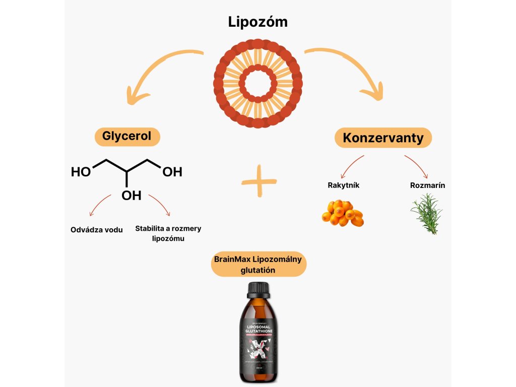 Lipozómy sú tvorené prírodnými fosfolipidmi, základnými zložkami našich buniek, ktoré umožňujú ich ľahký priechod cez bunkové steny pasívnym transportom. Prirodzene sa vyskytujú napríklad v kolostri a materskom mlieku, kde je kľúčová maximálna absorpcia a využiteľnosť. Lipozomálny transportný systém predstavuje efektívnu alternatívu k príjmu glutathionu po injekčnej aplikácii. Navyše sú lipozómy šetrnejšie k žalúdku aj pri vyšších dávkach v porovnaní s bežnými formami.
