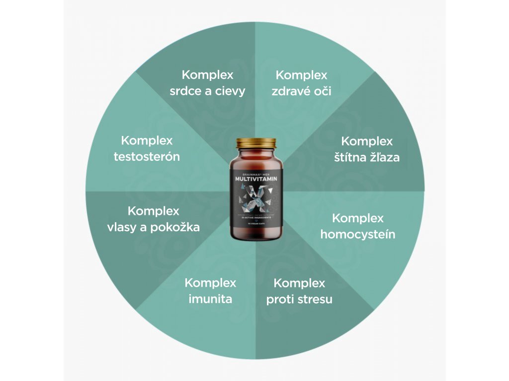 Multivitamín pomáha zmierniť fyzické i psychické vyčerpanie a stres. Obsahuje špeciálne navrhnuté komplexy látok podporujúce imunitu, kardiovaskulárny a reprodukčný systém, zdravie prostaty, štítnej žľazy, očí, kostí, zubov, svalov, vlasov a pleti. Je určený pre mužov všetkých vekových kategórií, ktorí preferujú jednoduchšie doplnky. Každá denná dávka obsahuje 33 dôležitých vitamínov, minerálov, antioxidantov a bylinné extrakty.