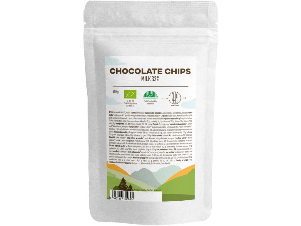 BrainMax Milk Chocolate Chips, čokoládové chipsy z mliečnej čokolády, BIO, 250 g