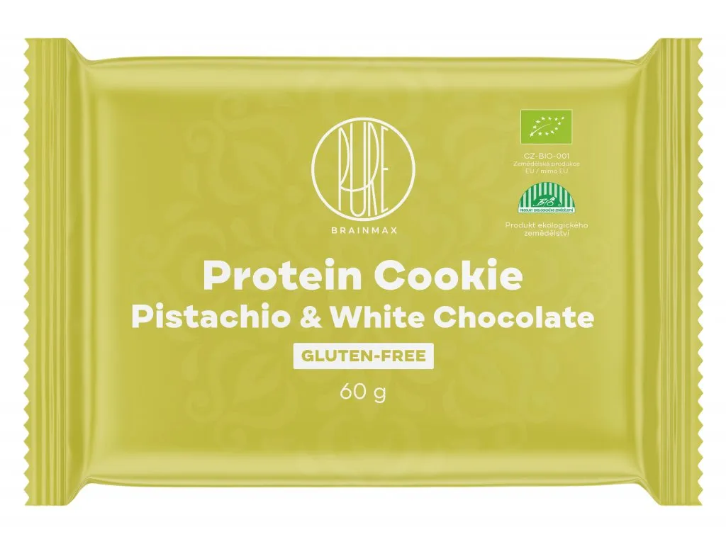 BrainMax Pure Protein Cookie – Pistácie & Biela čokoláda, BIO, 60 g