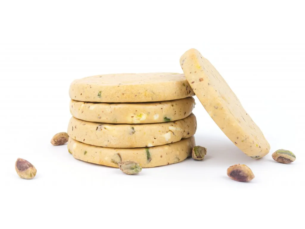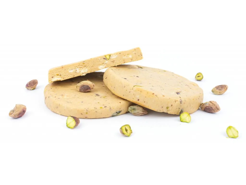 Proteínová sušienka vyrobená z bio srvátkového a bio mliečneho proteínu. Obsahuje kúsky chrumkavých bio pistácií a bio bielej čokolády, čo dodáva sušienke príjemne sladkú chuť. Sušienka je mäkká, vláčna a všetky použité ingrediencie sú v bio kvalite. Aj tí najnáročnejší si na nej pochutnajú!