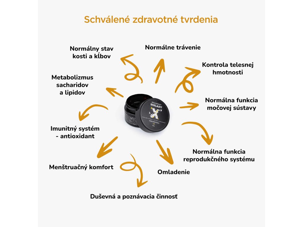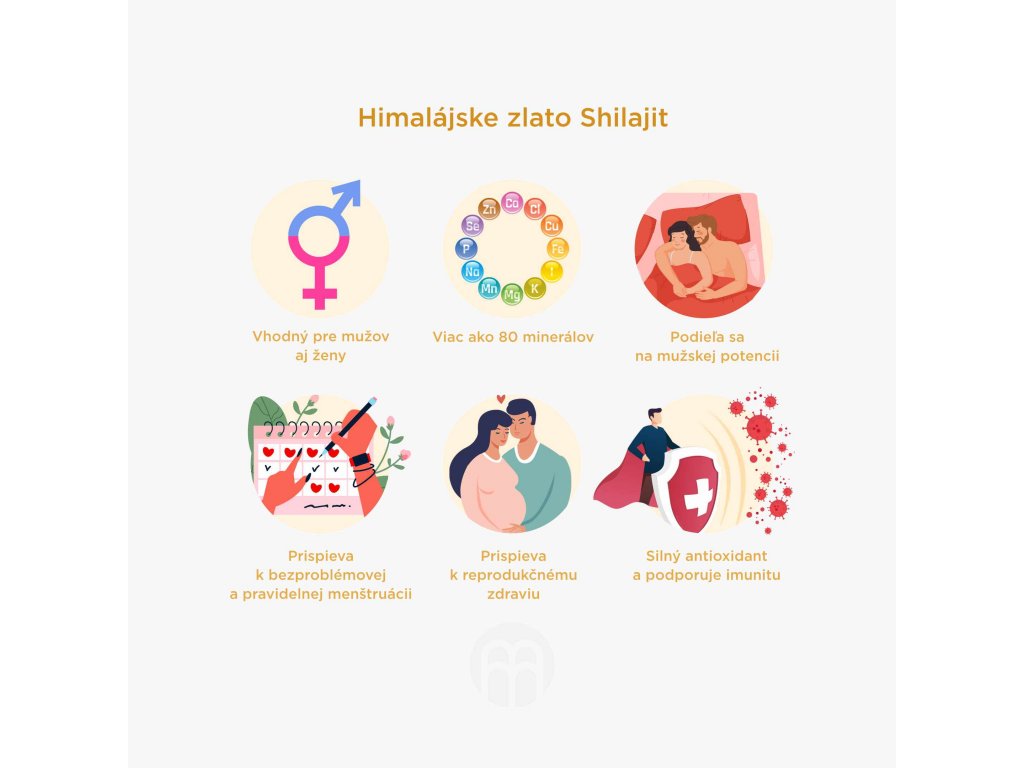 BrainMax Shilajit je živica vznikajúca rozkladom rastlín v horninách, ktorá sa pod tlakom a teplom uvoľňuje a zbiera. Je kľúčovou súčasťou tradičnej medicíny a prispieva k funkcii reprodukčného systému, močovej sústavy, zdraviu kostí, imunitnému systému, tráveniu a duševnej činnosti. U žien podporuje reguláciu menštruácie.