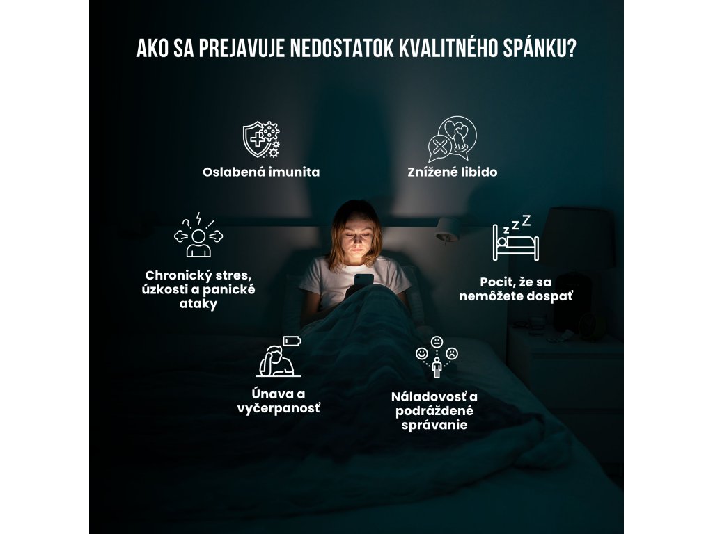 - Chronický stres, úzkosti, panické ataky: Nedostatok spánku môže spôsobiť podráždenosť, zvýšený stres, depresie a emočnú nestabilitu.