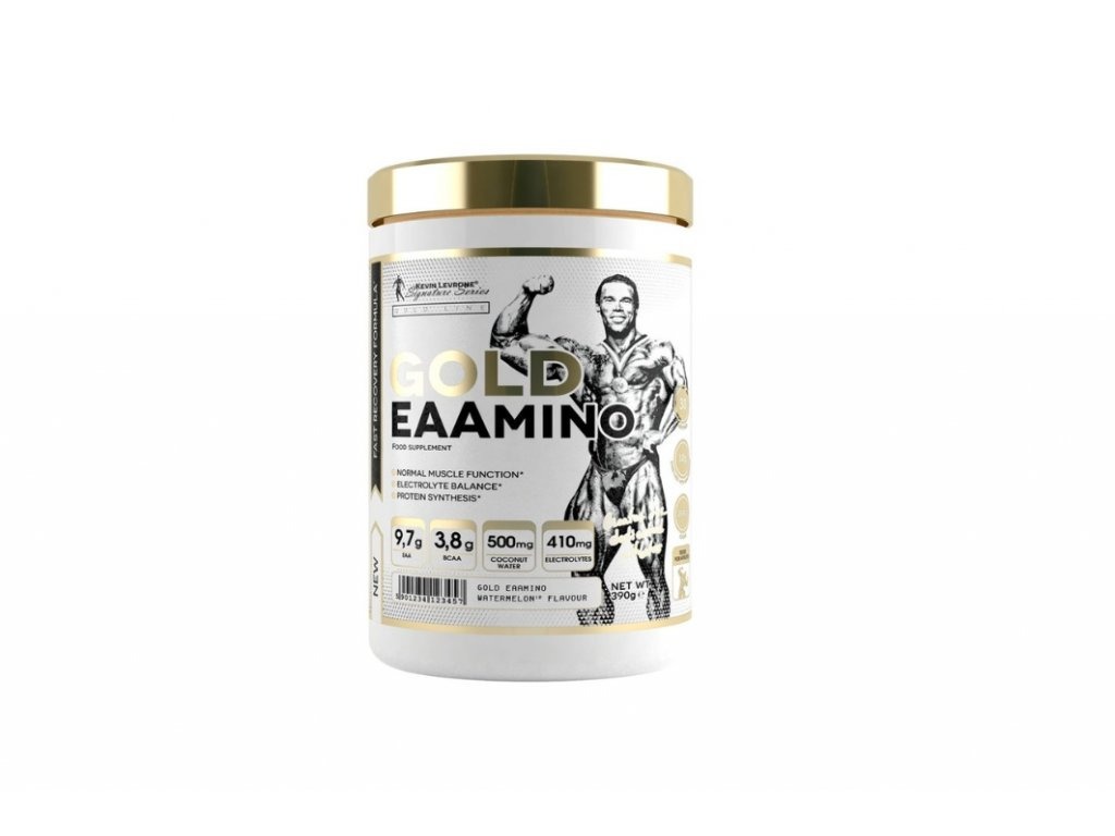 Kevin Levrone GOLD EAA Amino je zmes esenciálnych aminokyselín. Ich rola spočíva predovšetkým v syntéze bielkovín. Starajú sa ale aj o metabolické procesy v našom tele. Háčik s EAA spočíva v tom, že si ich naše telo nevie vyrábať samo. A preto je ich príjem nutný riešiť zvonku. Prevažne príjmom bielkovín, v ktorých sú obsiahnuté.
